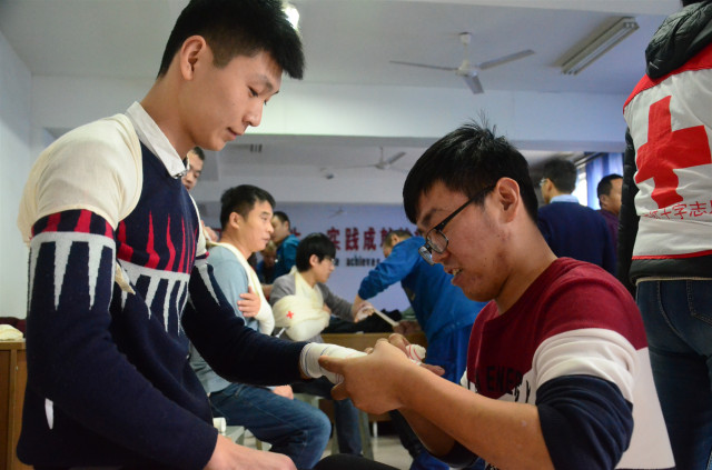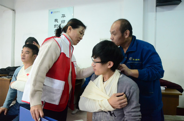 參加培訓(xùn)的安全員通過認真學(xué)習(xí)和按照要求進行實際操作演練,在學(xué)習(xí)心肺復(fù)蘇的操作以及AED的使用,創(chuàng)傷救護止血、包扎、固定、搬運等四大技術(shù)的理論與實際操作基礎(chǔ)上,還認真聆聽了中國紅十字會的發(fā)展歷程以及“三救三獻”的工作職責(zé)。