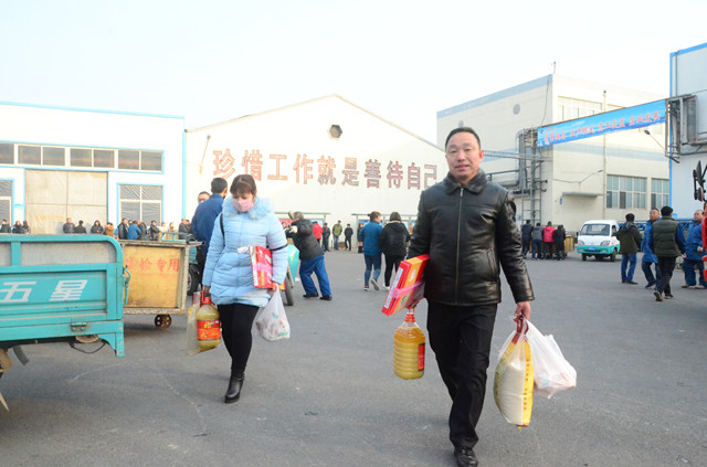 1月21日,公司主廠區(qū)廣場上再現(xiàn)熱烈氣氛,員工們以部門為單位,在這里領(lǐng)取公司為在崗員工和退休職工準(zhǔn)備的豬肉、花生油、大米等“年貨”,以體現(xiàn)對廣大員工建設(shè)企業(yè)、奉獻(xiàn)事業(yè)的慰問之情。