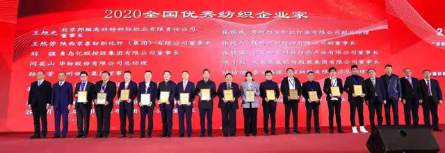 在本次大會上,由公司黨委書記、董事長王力民主創(chuàng)完成的“精益生產(chǎn)創(chuàng)客小組 助力高質(zhì)量發(fā)展”管理創(chuàng)新成果,被中國紡織工業(yè)聯(lián)合會授予“管理創(chuàng)新主創(chuàng)者”一等獎;公司同時獲得“2020年度產(chǎn)品開發(fā)貢獻(xiàn)獎”“十大創(chuàng)新成果獎”等榮譽。公司總經(jīng)理閆英山被授予“2020年全國優(yōu)秀紡織企業(yè)家”榮譽稱號,并代表公司參加了“中國紡織服裝產(chǎn)品全生命周期評價小組”的啟動儀式。