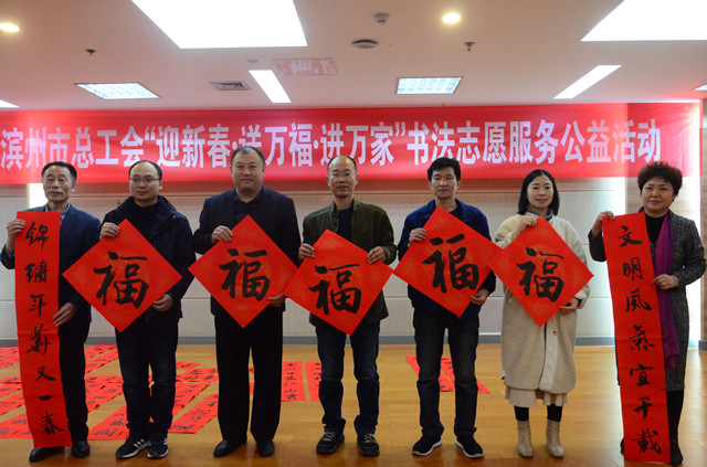 1月29日,市總工會在市職工活動中心舉行“迎新春 送萬福 進萬家”書法志愿服務(wù)公益活動舉,邀請到市書法家協(xié)會的5位書法家現(xiàn)場書寫春聯(lián)、福字。公司勞模代表和職工代表與渤海活塞、交運集團的代表一道,參加此次活動。
