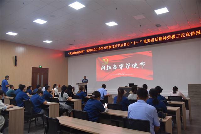 導(dǎo)讀:由濱州市總工會(huì)主辦的“我為群眾辦實(shí)事”學(xué)習(xí)宣傳貫徹習(xí)近平總書(shū)記“七一”重要講話精神勞模(工匠)宣講報(bào)告會(huì)首次宣講,在公司會(huì)議中心舉辦。