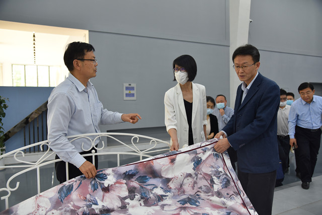 調(diào)研組一行先后到公司智云中心、檢測中心、綜合辦公區(qū)、服裝面料展廳、花布展廳、家紡展廳、創(chuàng)意設(shè)計(jì)中心、工程技術(shù)研究院、花布車間生產(chǎn)現(xiàn)場等實(shí)地調(diào)研,詳細(xì)了解了企業(yè)運(yùn)行、市場營銷、科技創(chuàng)新、戰(zhàn)略規(guī)劃等情況,詢問企業(yè)發(fā)展過程中遇到的問題和困難,并聽取了公司董事長盛守祥對(duì)公司總體生產(chǎn)經(jīng)營情況的匯報(bào)。調(diào)研組對(duì)公司多年來的發(fā)展成績給予了充分肯定,并表示華紡公司多年來深耕紡織印染領(lǐng)域,不斷做大做強(qiáng)、是一家高質(zhì)量發(fā)展、成長性良好的企業(yè);同時(shí),企業(yè)在發(fā)展的過程中積極履行社會(huì)責(zé)任,體現(xiàn)了企業(yè)的社會(huì)擔(dān)當(dāng)。