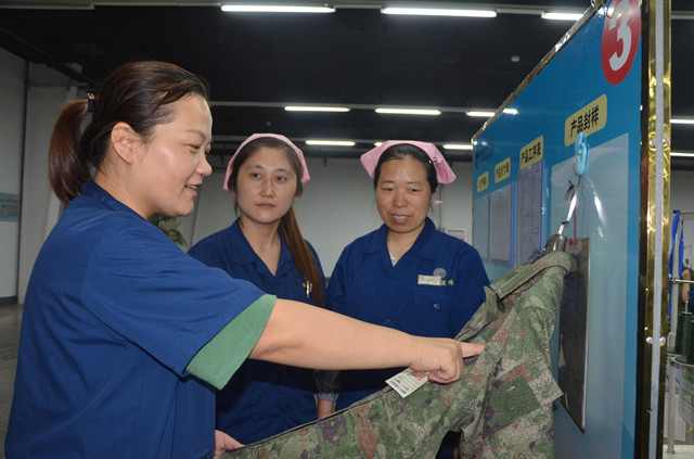 服裝車間員工現場討論推進開源節(jié)流和質量提升工作