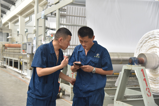 孫鎮(zhèn)身著工裝,每天巡回在車間前處理機臺之間,和暢的機聲成了他工作之時的伴奏。落實各機臺的計劃,組織各機臺生產跟進,管控本班的產品質量,對操作規(guī)范進行及時檢查、現(xiàn)場糾偏與指導培訓。他一心撲在工作上,每天忙得不亦樂乎,目標是帶領全班19名成員保質保量地完成車間下達的任務目標。他說,“做好生產工作有兩件法寶:一個是責任感,一個就是精益生產意識。”在孫鎮(zhèn)的心目中,作為公司的管理主線,精益生產需要全體“華紡人”共同傾心“打磨”,在時間里“磨”出真功夫來,干工作沒有捷徑,反復推敲,仔細琢磨;經過工作實踐的摸爬滾打,才能提升自身本領,才會使生產工作一步步精進。