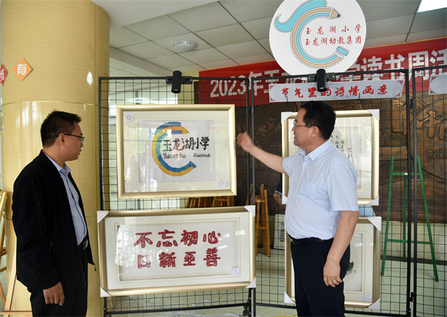 玉龍湖小學校長張盛群接待了孫玉濤一行并介紹了學校發(fā)展情況、辦學特色以及培養(yǎng)模式進行了全面的講解與介紹。