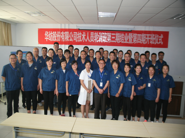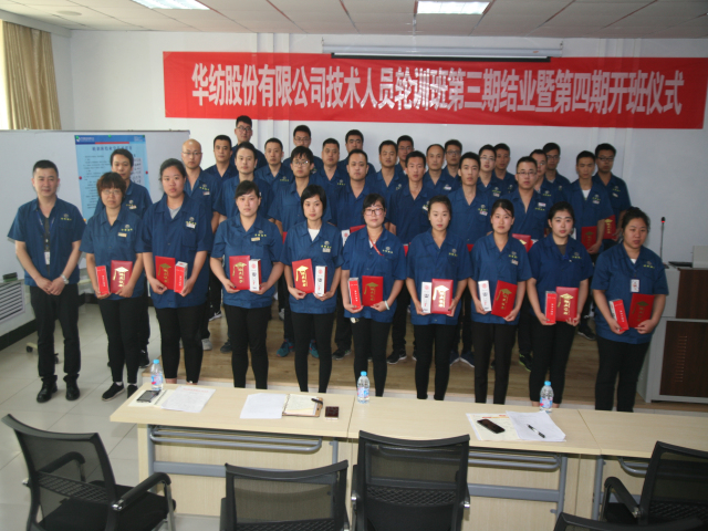 6月18日,公司專業(yè)技術(shù)輪訓(xùn)班第三期結(jié)業(yè)暨第四期開班儀式,在公司工程技術(shù)研究院舉行。儀式上,工程技術(shù)研究院副院長孫紅玉對第三期輪訓(xùn)工作進(jìn)行了總結(jié);總工程師羅維新宣讀了《關(guān)于對染整專業(yè)技術(shù)培訓(xùn)班(第三期)馬士國等35人準(zhǔn)予結(jié)業(yè)的通報(bào)》、《關(guān)于對染整專業(yè)技術(shù)培訓(xùn)班(第三期)優(yōu)秀團(tuán)隊(duì)、優(yōu)秀學(xué)員的表彰決定》、《關(guān)于對染整專業(yè)技術(shù)培訓(xùn)班(第四期)學(xué)員組成的通報(bào)》;總經(jīng)理閆英山為第三期輪訓(xùn)班結(jié)業(yè)學(xué)員頒發(fā)結(jié)業(yè)證書,為優(yōu)秀團(tuán)隊(duì)花二車間小組及馬士國、李義、陳愛民等三名優(yōu)秀學(xué)員頒發(fā)獎(jiǎng)狀證書,為第四期學(xué)員頒發(fā)了專業(yè)學(xué)習(xí)書籍;王金亮、馬士國、商曉峰分別代表往期學(xué)員、本期學(xué)員和下期學(xué)員發(fā)言;公司黨委書記、董事長王力民圍繞堅(jiān)持“求學(xué)、求知、求真、求實(shí)”的作風(fēng)信條做了重要講話。