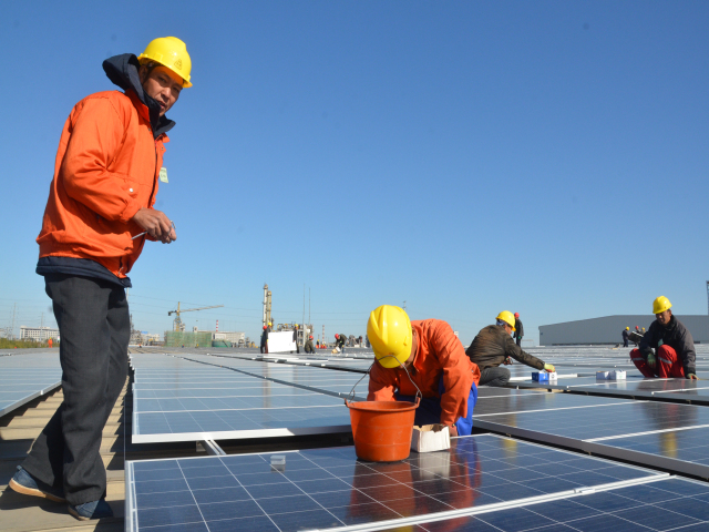 導(dǎo)讀:10月29日,一些工人正在公司工業(yè)園紡紗車間5萬(wàn)多平方米的廠房房頂上,將一塊塊用于一期6MW光伏發(fā)電項(xiàng)目的光伏組件陸續(xù)安裝到位。
