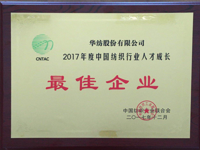 日前,中國紡織工業(yè)聯合會2017年人才工作大會在濟南召開,會上表彰了人才建設工作先進單位和個人。公司以在人才機制建設、人才培育成長等方面的良好成效,榮獲“2017年度中國紡織行業(yè)人才成長最佳企業(yè)”稱號;公司黨委書記、董事長王力民以對廣大員工及各類人才的關愛情懷,榮獲“2017年度中國紡織行業(yè)關愛員工優(yōu)秀企業(yè)家”稱號。
