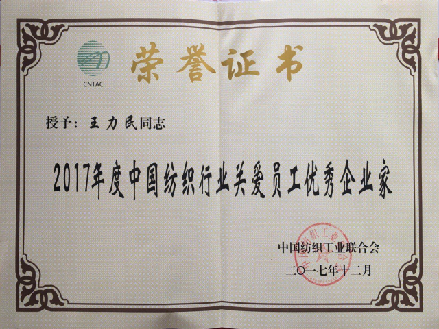 導讀:日前,中國紡織工業(yè)聯合會2017年人才工作大會在濟南召開,公司榮獲“2017年度中國紡織行業(yè)人才成長最佳企業(yè)”稱號;王力民榮獲“2017年度中國紡織行業(yè)關愛員工優(yōu)秀企業(yè)家”稱號。
