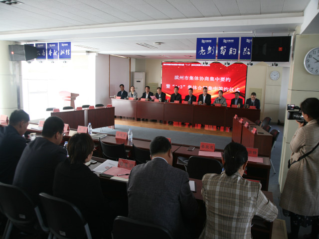 公司是全國紡織行業(yè)的優(yōu)勢骨干企業(yè),多年來規(guī)范協(xié)商、認(rèn)真履行《集體合同》,在員工權(quán)益、安全生產(chǎn)及女職工保護(hù)等方面取得了良好成效,集體協(xié)商制度也為員工隊伍穩(wěn)定、企業(yè)整體發(fā)展提供了有力保障。京博集團(tuán)、渤?;钊葹I州市不同行業(yè)的優(yōu)勢骨干企業(yè),一同參加了當(dāng)天的集中簽約儀式。圖為當(dāng)天集中簽約儀式現(xiàn)場情形。